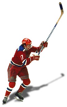 Born in 1948 in Moscow, Valeri Kharlamov's accomplishments belied his diminutive 5 ft 8 inch stature. He combined speed, strength, intelligence, spectacular skills and a natural goal scoring ability to fashion an outstanding 14- year career with CSKA Moscow (Central Red Army) in the Soviet league. Kharlamov played in 436 regular season games, recording 293 goals and 214 assists while helping the Red Army team win 11 league championships. He participated in eleven consecutive IIHF World and European championships and helped the Soviet Union win gold on eight occasions. In other international play, he participated in three Olympic Games, winning gold in 1972 and 1976, and was a key member of one of the greatest lines in hockey history, partnering with Army teammates Boris Mikhailov (RW) and Vladimir Petrov (Centre).