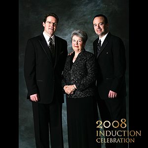 Dean and Jeff Chynoweth, children of the late 2008 Inductee Ed Chynoweth, gather with their mother Linda Chynoweth during the formal Inductee photo shoot. (Silvia Pecota/HHOF/10Nov08)