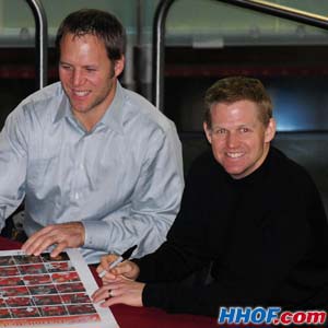 Kirk Maltby and Chris Osgood of the Detroit Red Wings sign an autograph for fans as part of the 2009 Induction Weekend.