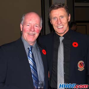 Honoured Memebers Billy Smith and Borje Salming enjoying themselves prior to the Hockey Hall of Fame Game at the Air Canada Centre. (Craig Campbell/HHOF/Nov.7 2009)